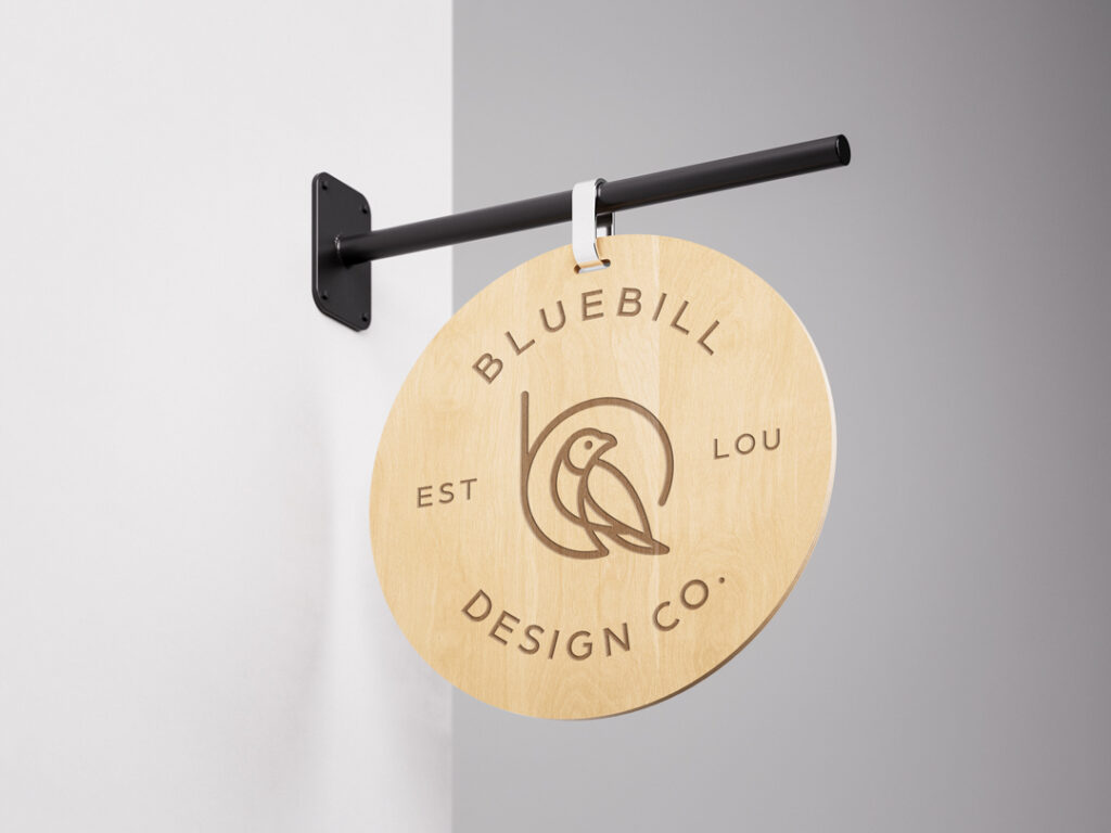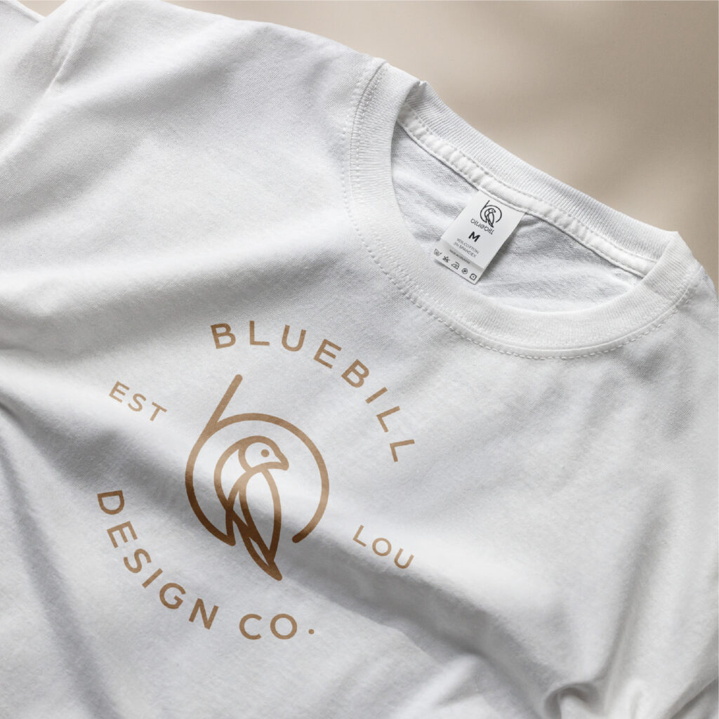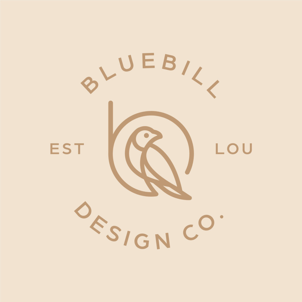 Bluebill is a locally owned small business specializing in precision laser engraving on wood and a variety of other materials. The logo design features a custom typeface inspired by the distinctive letterforms of a vintage 1970s Canon camera logo, reflecting the owner’s passion for photography and classic film cameras.